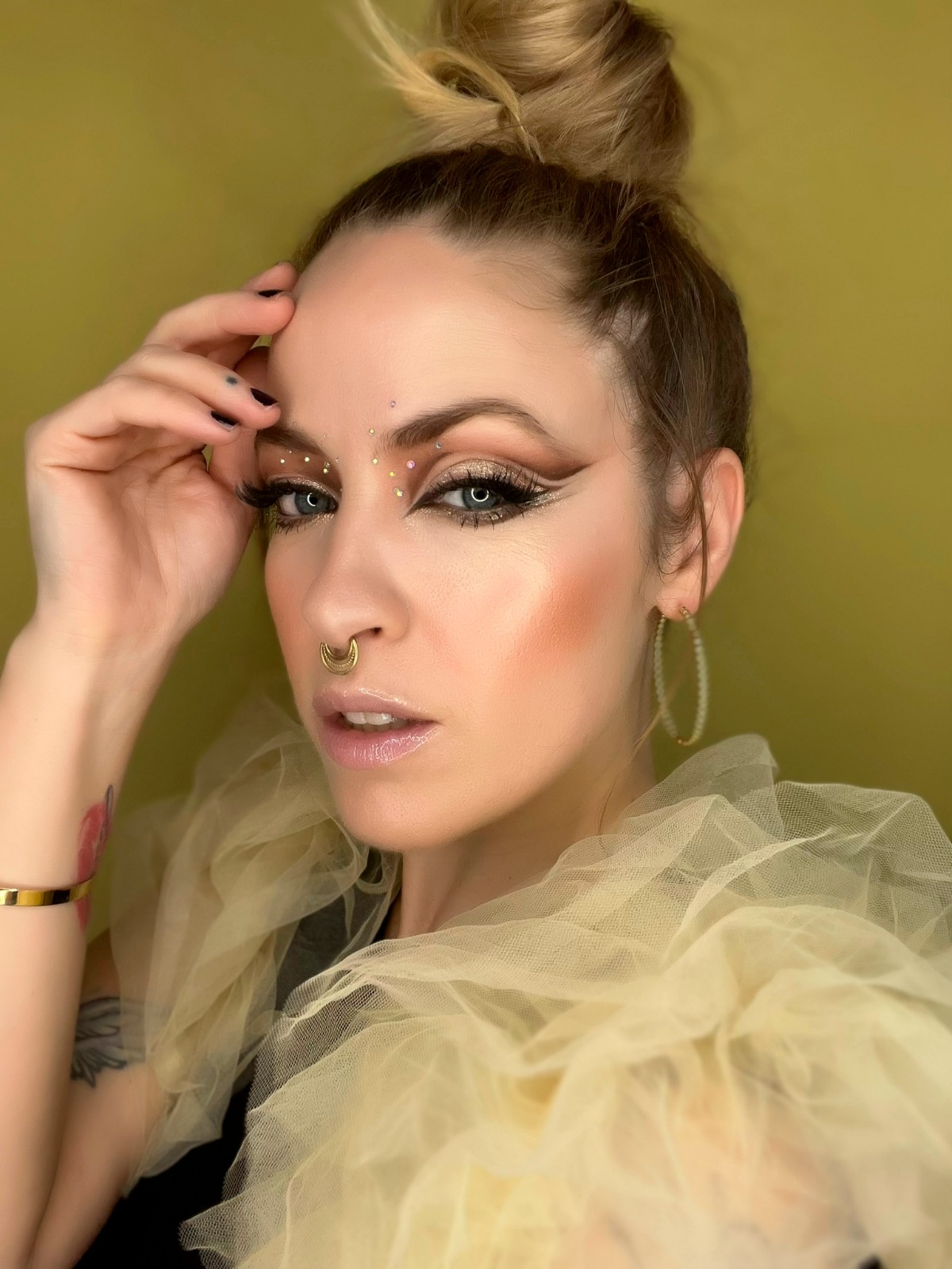 Artistic Glam – con detalles creativos, toques metálicos o efectos de piel brillante para escenario o fotografía.